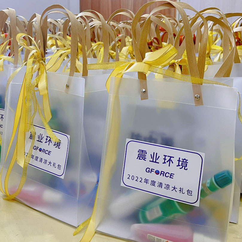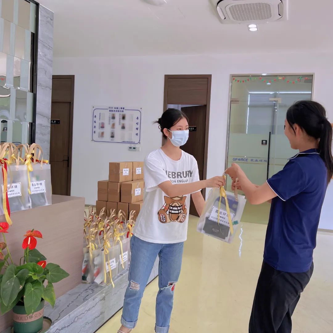 因此,公司為每位員工精心準(zhǔn)備了夏日清涼大禮包:免洗消毒液、定制袖套等降暑用品100余份。