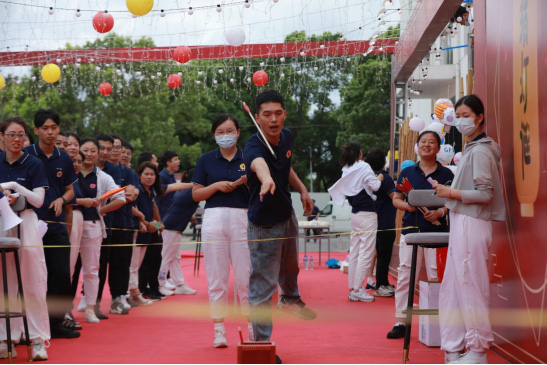 現(xiàn)場(chǎng)活動(dòng)包含扎氣球分組、DIY月亮燈、猜燈謎、投壺、套圈等小游戲。